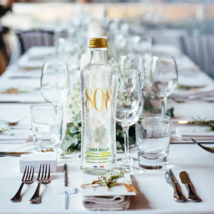 Drawn from a depth of 808 meters in Provence, 808 Water embodies purity — naturally protected and perfectly balanced. It comes in three complementary expressions: still, soft and subtle, ideal for delicate dishes; lightly sparkling, elegant and refined, gently stimulating the palate; and sparkling, more intense and invigorating, perfect for enhancing bold flavors. Three experiences, one uncompromising standard of purity.